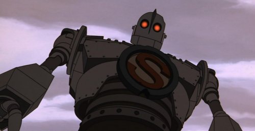 We see in the promotional image a big powerful iron giant holding a relatively weak little boy. The giant holds the boy in his left hand, the hand of cursing in contrast to the right hand of blessing. The cursed human is presented as feeble compared to the mighty iron giant. I'd like to counter that imagery with reference to the true and prophetic biblical account of David and Goliath. Remember - Goliath loses! David wins, who trusts not in his own strength and ability but in his God's, who loves him dearly!