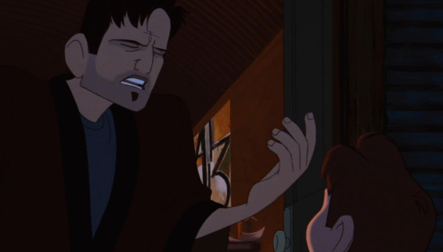 Dean throws open the door, briefly exposing the poster.