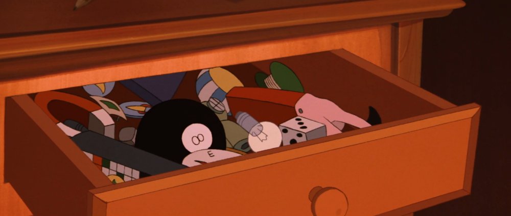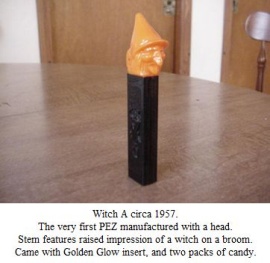 There is a black and flesh-colored PEZ dispenser, which is a candy dispenser that became popular as a toy in 1956-1957. The popular PEZ was a witch riding on a broomstick, although the one in the drawer appears to be a pink rabbit.