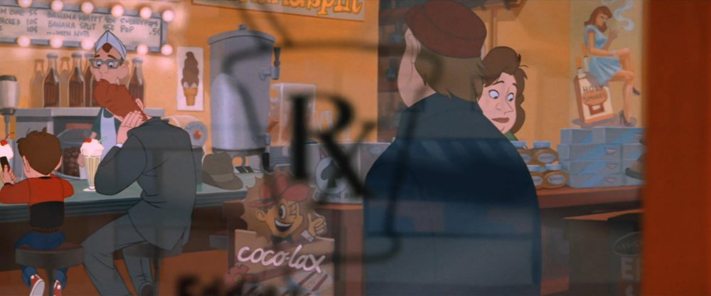 When we first see Hogarth and Kent at the Rexall Pharmacy they are inside, seated at the counter, being viewed from outside through the front door's window. We hear some softly muted jazz. When the "observer" moves (@ 44 minutes 14 seconds into the movie, if you're searching) inside the pharmacy we hear the volume of the music jump accordingly, revealing that the music is being played inside. A similar shift takes place in the espresso scene (@ 39 minutes 0 seconds into the movie). During the set-up for the scene we're shown Dean's Hi-Fi and his extensive jazz record collection, which helps call it out to our attention.