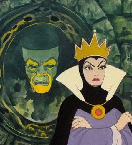 In popular culture the "classic" animated feature "Snow White and the Seven Dwarfs" features this practice with the question asked being, "Mirror, mirror on the wall, who is the fairest of them all?" Disney productions specialize in occult indoctrination, with another notable example being the ubiquitous Mickey Mouse as the sorcerer character with a crystal ball.