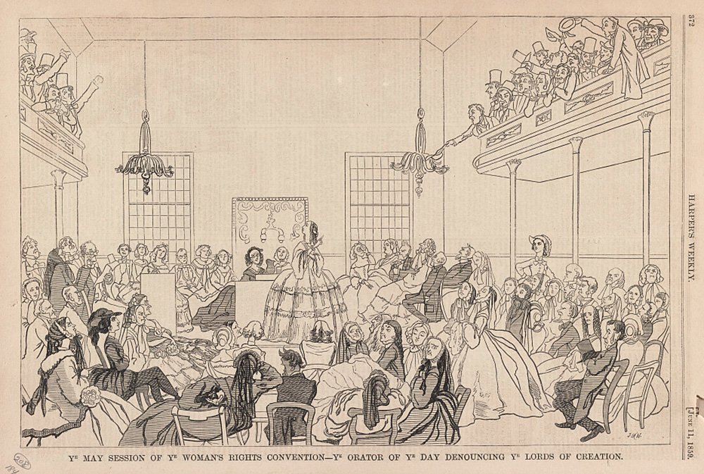 In 1848, a group of abolitionist activists —mostly women, but some men— gathered in Seneca Falls, New York to discuss the problem of women’s rights. ... "We hold these truths to be self-evident," proclaimed the Declaration of Sentiments that the delegates produced, "that all men and women are created equal, that they are endowed by their creator with certain inalienable rights, that among these are life, liberty, and the pursuit of happiness."