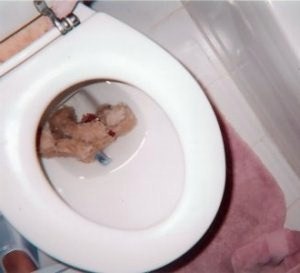 On the morning of August 21 I got a phone call from a dear sister in the Lord. She had earlier that morning had an odd experience that brought to her mind what I've written about the counterfeit baptism. In the bathroom of the house where she was living at the time there were shelves above the commode. On the shelves were two angels and one teddy bear between them that belonged to her house-mates. That morning, my friend discovered the teddy bear in the commode. She took the picture you see here on the left. There were no small children around but there were two pet cats in the household. My friend suspected the cats had a role in this activity so she was talking to them about which of the two might have knocked the teddy bear into the commode. As she did she felt she heard in the spirit, "Are you sure that's what happened?" The counterfeit baptism immediately came to her mind, given that the bear got a dunking. Thinking back on the morning, she later remembered vaguely hearing a strange noise that was not the splash she would expect a teddy bear falling into a commode to make. It was instead a peculiar flushing sound. When I sent an email to everyone on my distribution list a couple days later, on the 23rd, I shared this story and wrote: "That teddy's baptism in the commode may be prophetic, perhaps a reminder to keep watching for signs of the baptism of the lawless one." It was indeed!