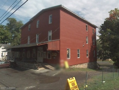 Here's two pictures of The Mill, complements of Google Street View. It appears to be in slightly better shape than I remember. One picture is a view from the street directly in front of the house where I lived. The Mill appears between the two poles. The other picture is looking at it from just the other side. According to a local historian, the mill had first functioned as a grist mill and saw mill, powered by steam. It's being used today as a meeting facility and apparently as a thrift shop or collection center. I visited there most recently in July of 2010. I sat in a rental car out front with my daughter, sharing this testimony with her.